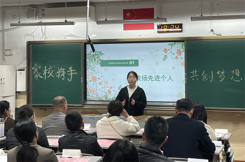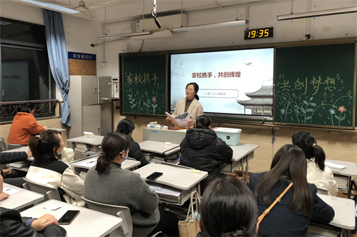 教学楼里各个班级灯火通明,老师和家长共聚一堂。干净而温馨的教室,精美而丰富的PPT,充实而详尽的会议内容,都诠释着老师们饱满的热情和真挚的诚意。