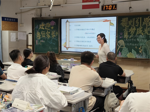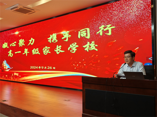 副校长张早慧在高二年级家长学校上,向家长汇报了学校2024年的办学成绩,并强调和谐融洽的亲子关系有助于高二学生的健康成长。