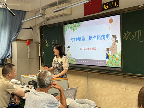 随着省统考的临近,高三年级的家长学校以“为TA赋能,助力省统考”为主题,各班班主任为家长们提供了详细的学习规划与心理辅导方案,与家长们进行了深入的交流与探讨并提供了许多实用的建议与指导方法,班主任们强调家长应从认知、情感、行为上为孩子“赋能”,帮助学生调整心态,提高学习效率,为省统考冲刺做好充分准备。