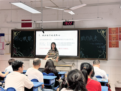 周凌峰副校长以其丰富经验为基础,运用鲜活实例分享了帮助孩子快速融入新环境、建立自信的方法。与此同时,各班级班主任也详尽地剖析了新生的学习特性及成长需求,并针对个体差异给予定制化的亲子互动建议,鼓励父母与子女之间展开更多深层次的情感交流,一同克服学习道路上可能遇到的各种障碍。