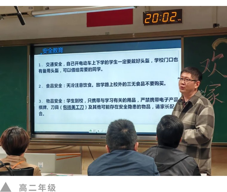 高二年级分管校长张早慧向家长们传达了学校对安全工作的高度重视,并详细列举了学校为保障学生安全所采取的有力措施。同时,张校长还向家长们通报了学校接下来的工作安排,包括教学计划、活动规划等,让家长们对学校的整体工作有了更为全面、深入的了解。