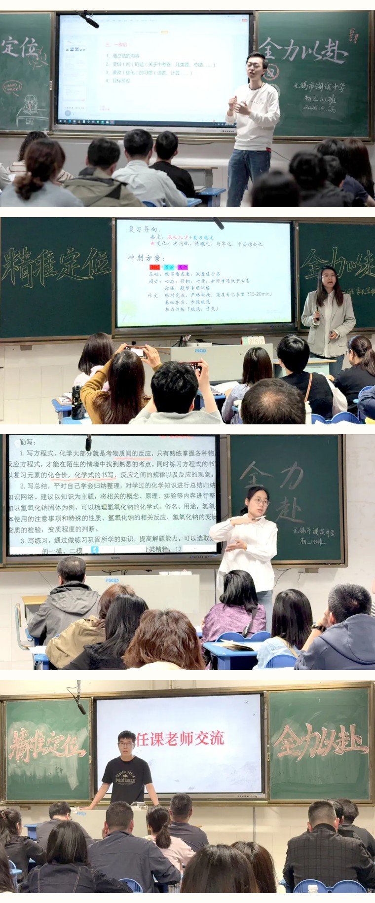 随后,各班分别进行交流,任课老师结合学科特色分析学情,班主任以“精准定位,全力以赴”为题,强调冲刺阶段的目标设定与家校协作的重要性。最后,在一对一沟通环节中,老师们就家长们关心的问题给予了详尽解答。此次活动不仅搭建了家校沟通的平台,也为初三学子迎接中考凝聚了力量。