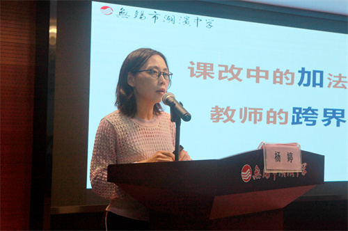 师训处杨婷副主任作了题为《课改中的加法与减法兼谈教师的跨界学习》的交流分享。杨主任从青年教师发展的角度出发,指出老师们要敢于给自己做加法:探寻跨学科的本质,跟随课改努力转变理念和想法,勇于实践;寻找学科间的关键点、融合点;把课堂时间、空间多留给学生;更要发挥个体的研究+团队教研的力量。通过减少教师低效的重复性劳动,来增加学生高质量的表现的体验,合作探究能力的提升,学生的创意表达,尤其是高阶思维的生成。她表示,教师跨界学习力是未来教师必备的素养,要用不断更新迭代的知识武装自己,突破边界来构建专业学习的共同体。用阅读的力量推动教育的进步,为学生的成长赋能,以跨学科主题学习的教学方式来推开新一轮课改的样态的建构。