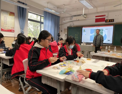 王云河秉承“精业怡美”的校训,涵育向善求真、自信包容、敬业担当、舒展豁达的“怡美生活者”。以美育浸润学生,通过美育的教育,可以在多个方面提升学生对文化的理解、审美素养、艺术感知表现,以及实践创意方面的核心素养,丰富学生的精神文化生活,让学生身心得到发展,愉悦和活力更加彰显,人格更加健全。在进行美育工作时,必须保持以道德为根本,深入贴近时代生活,依循美育特质,传承和弘扬中华美育之精髓。传承600多年的景泰蓝工艺是我国首批非物质文化遗产,掐丝珐琅画脱胎于古老的景泰蓝工艺,具有天然的亲和力,感染力,激发学生对传统文化的认识,坚定文化自信,能丰富学校美育教学的内容,促进美与课程改革,提高学生的创新实践能。在艺教处和教务处的帮助下,湖滨中学掐丝珐琅社团于2022年9月份成立。掐丝珐琅社团成员以高一学生为主体,成员在一个课程周期(12课时)里面了解景泰蓝,认识熟悉掐丝珐琅工艺,并学会制作一件简单的掐丝珐琅画作品。生团成立以来,社团成员参与学校的国庆宣传,参与市教育局组织策划的“我为良师”活动展示。把有趣的掐丝珐琅画引入中学美术教学,不仅扩展了课程内容,也让学生更好地领略传统文化之美,深刻感受其独特韵味,有助于传承和创新中国的文化传统。通过学习和实践掐丝珐琅画,学生不仅可以提升实践技能和美术素养,还能传承优秀的传统文化,激发民族自豪感。
