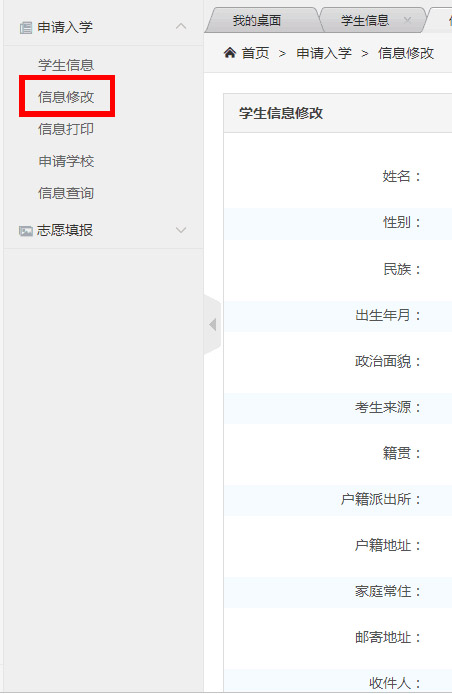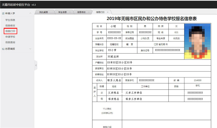 修改完成后,可以点击左侧“信息打印”打印报名信息表备用。