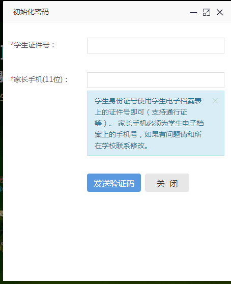首次登录需要重置密码,点击“重置密码”进入以下界面。家长可以通过学生的身份证号和预留的手机来修改密码。修改成功后重新登录招生平台,用学生身份号和密码登录。
