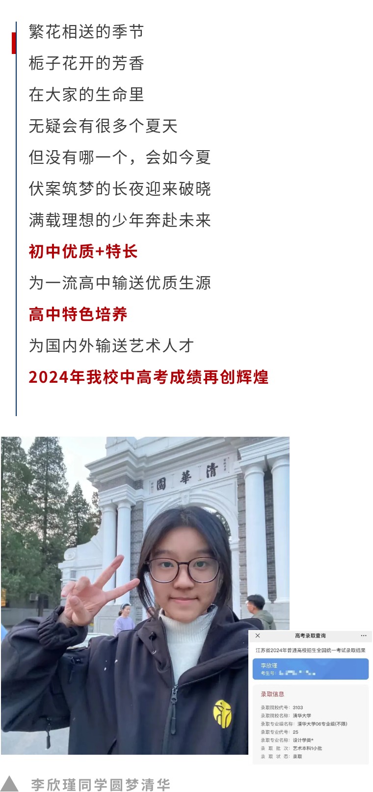 李欣瑾同学圆梦清华