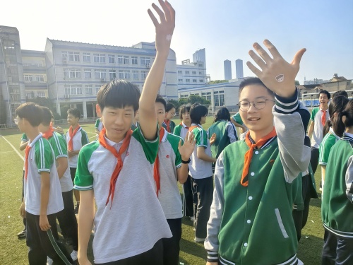 紧接着,“人浪能量环” 将活动推向高潮。集体深呼吸搭配浸有薄荷精油的棉片,瞬间激活大脑;相邻同学小指相扣同步呼吸,触觉的奇妙连接让大家的心也紧紧靠在一起。