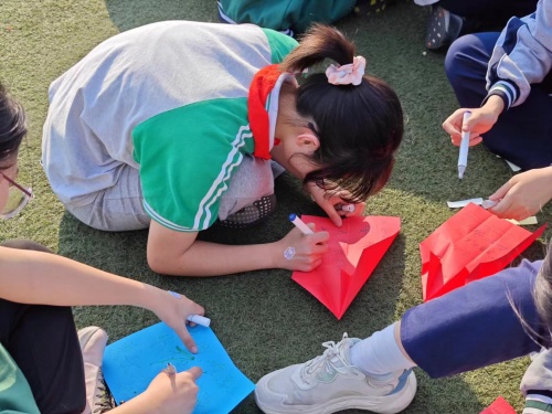 活动的最后,“梦想起飞” 为这场减压之旅画上了温暖又充满希望的句号。同学们在 A4 纸上写下、画下自己的目标,折成飞机放飞。飞机上还藏着超酷的抗压彩蛋 —— 自我激励暗语,机翼上的荧光笔祝福语闪闪发光。