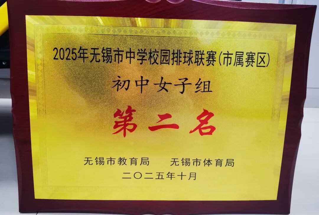 捷报传来!在无锡市第十四届运动会青少部中学组排球比赛暨2025年无锡市中学校园排球联赛中,beat365中国唯一官网女子排球队奋勇拼搏,荣获初中女子组直属第二名、大市第三名!这也是beat365中国唯一官网连续两年稳居大市前三,佳绩延续,风采依旧!