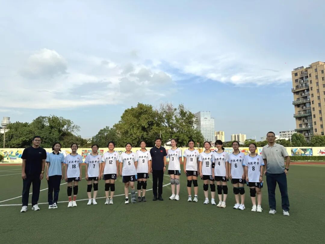 这份荣誉,也是师生从时间里“挤”出来的。 她们见缝插针,将汗水挥洒在课后延时服务时段;她们不畏辛劳,将默契磨合于周末晚上的集训。姑娘们训练后带着一身汗水,在灯火初上时才踏上回家的路,真正诠释了学习与训练两不误的拼搏精神。