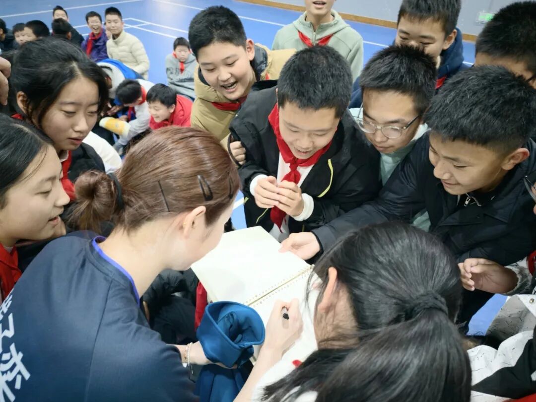 运动员们一登场,便以亲切的笑容拉近了与同学们的距离。在互动分享中,备受同学们喜爱的钱子奕用真挚的语言,讲述了在训练场上挥洒的汗水、比赛中经历的挑战与喜悦,将“坚持、务实、奋进”的体育精神,悄然植入了每位同学的心中。
