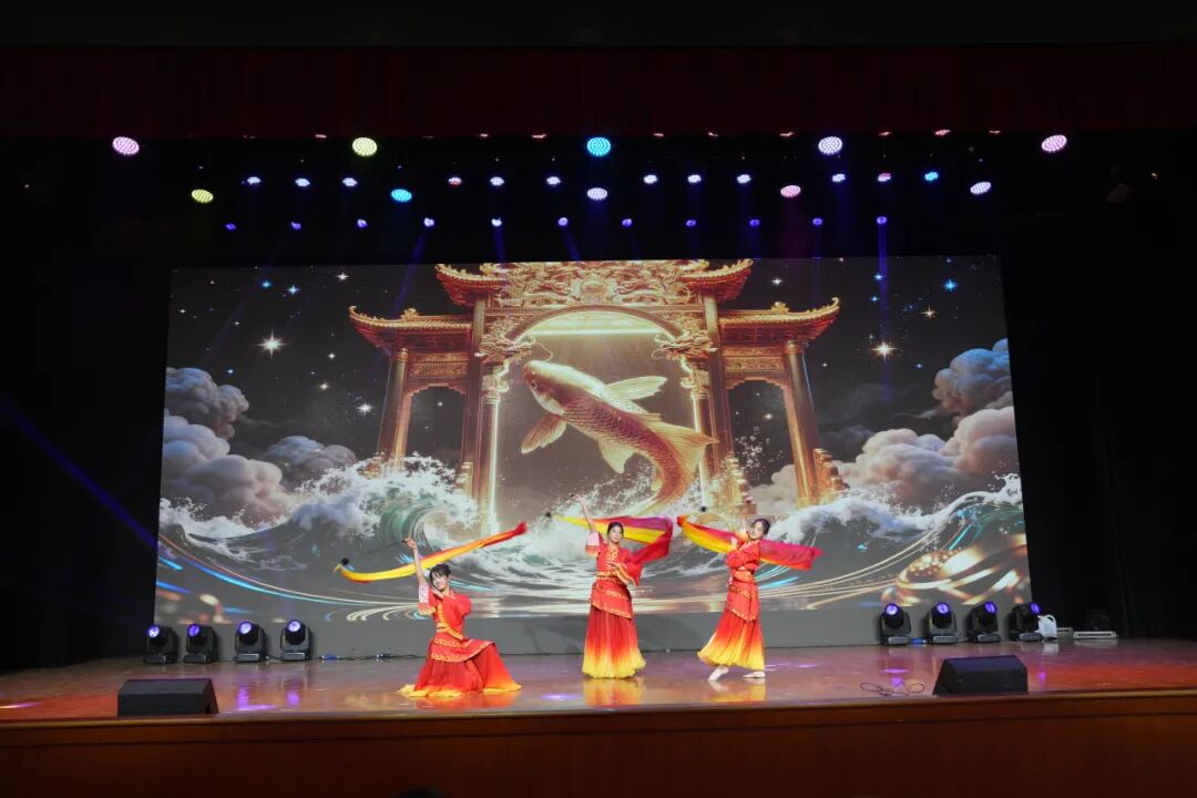掌声未落,灯光流转,富有传统文化意蕴的舞蹈《鲤鱼跃龙门》热烈开启下一篇章,以多元艺术形式集中展现了湖滨学子全面发展的丰硕成果与昂扬向上的精神风貌,成为整场汇演中活力迸发、才情漫溢的华彩乐章。