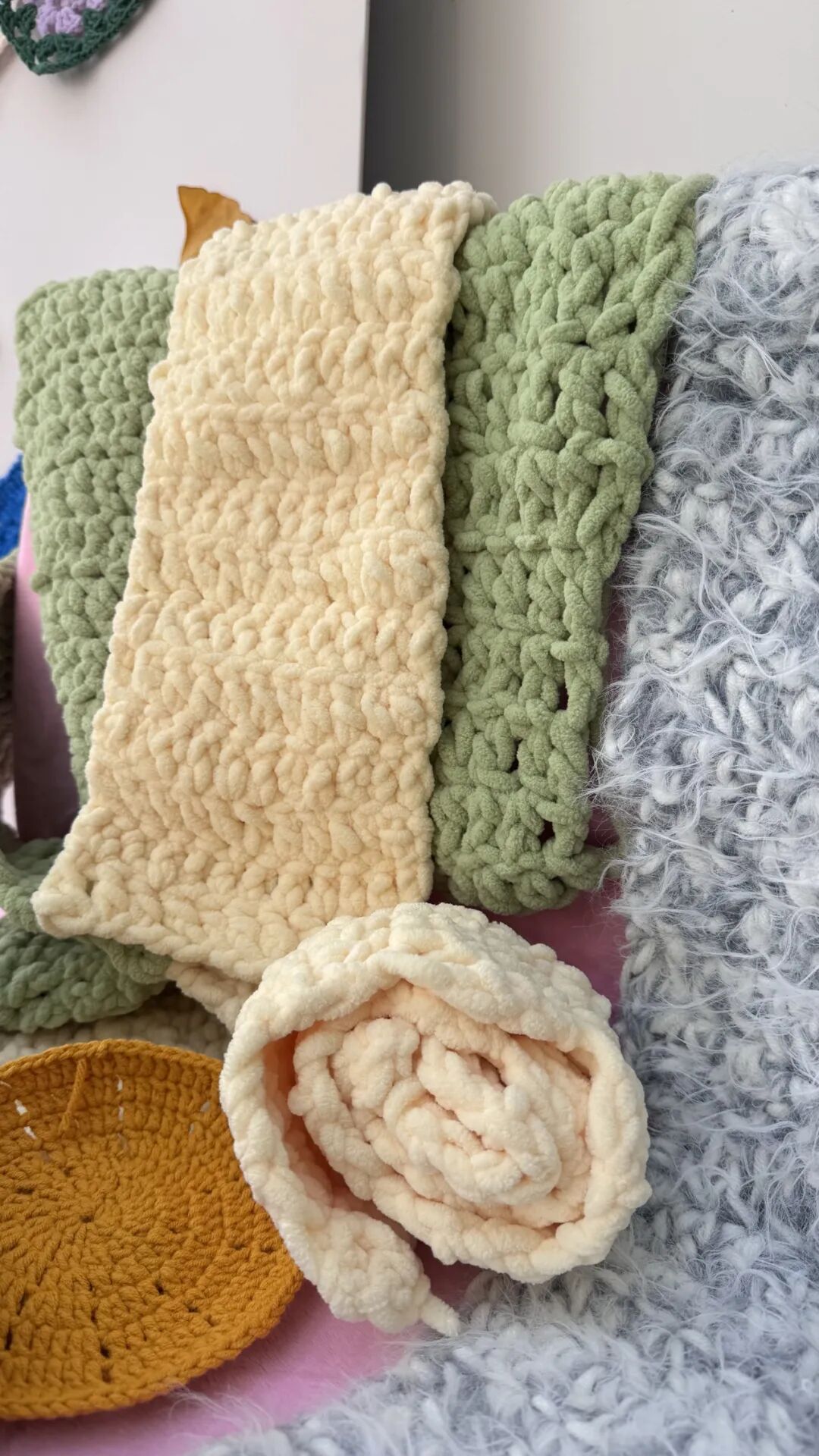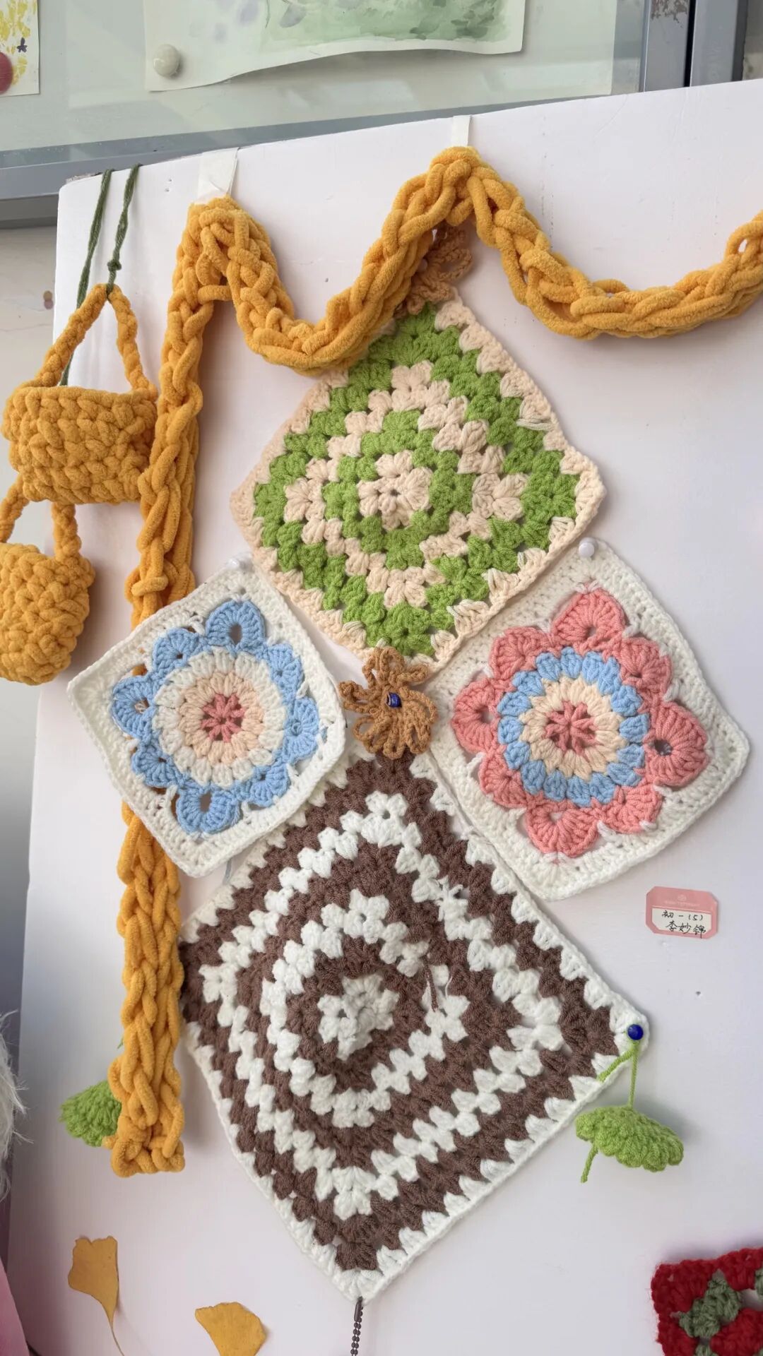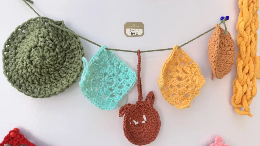 落叶手作与毛线编织品整齐陈列
