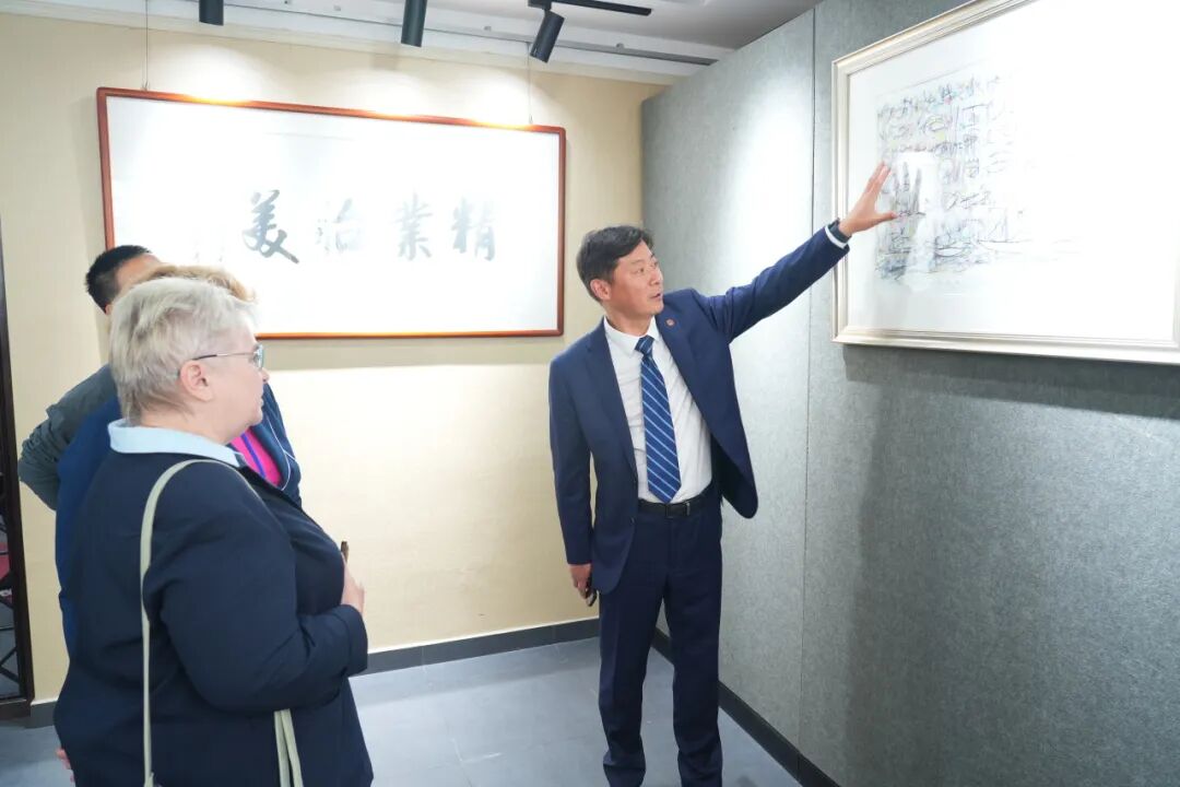 代表团首站来到学校的美展厅。参观了“纸脉相承——无锡美术馆馆藏版画作品展”,一幅幅精选的版画作品以刀代笔、以纸为媒,呈现出江南水乡的独特韵味与中国现代版画艺术的深厚积淀。