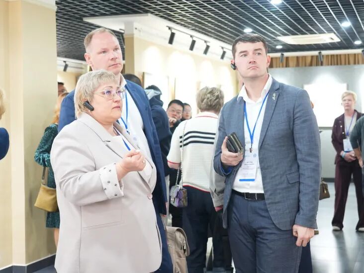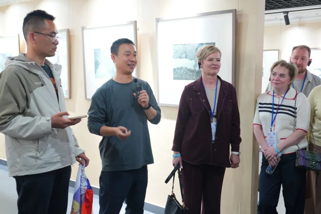 俄方校长们表现出浓厚兴趣,双方不约而同地围绕“AI时代,教育何为”的话题展开了一场即兴而深入的交流,思想的火花在展厅中悄然碰撞。