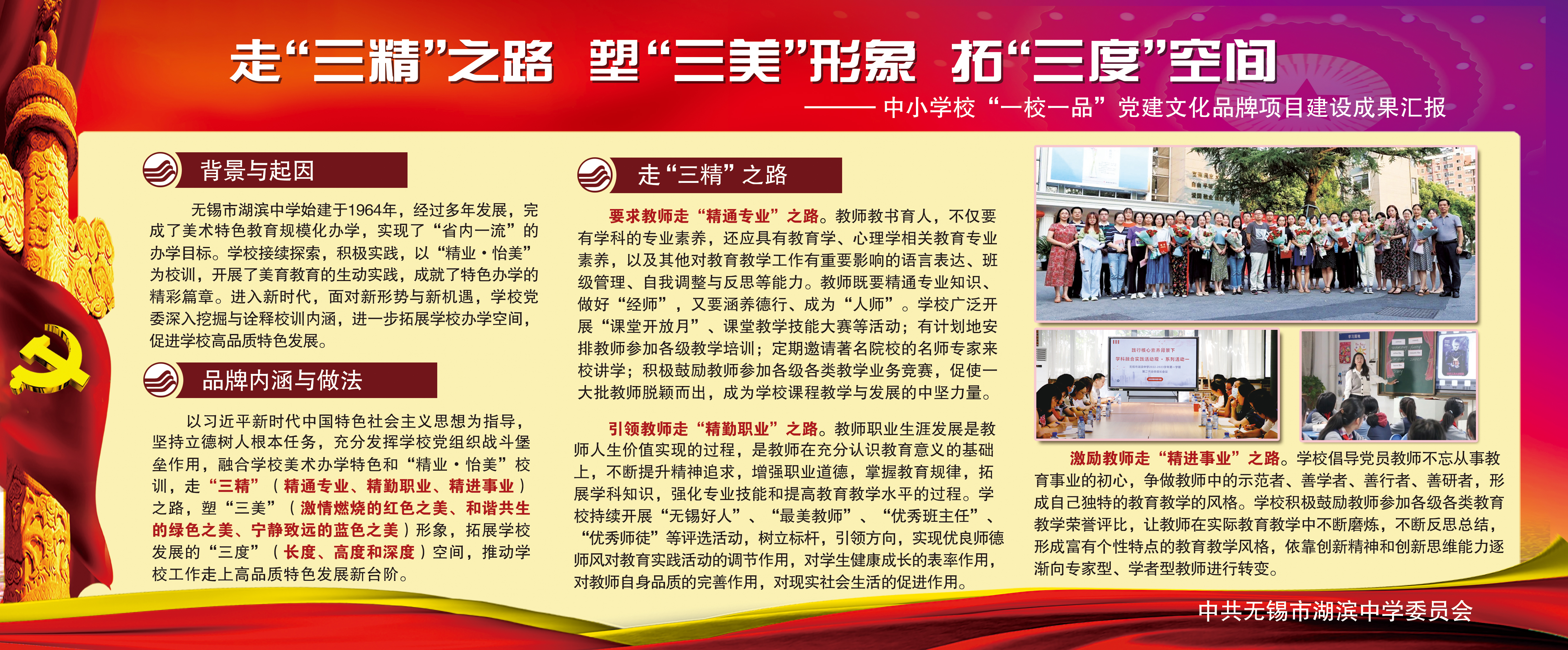 湖滨中学党委深刻认识到,党的建设是办好教育的根本保证。在推进学校高品质特色发展的新征程上,必须充分发挥学校党组织的战斗堡垒作用和党员教师的先锋模范作用。基于对校史校情的深刻把握和对未来发展的战略考量,学校党委决定将党建工作的独特优势与学校的美术教育特色、长期的育人实践进行系统性整合与升华。