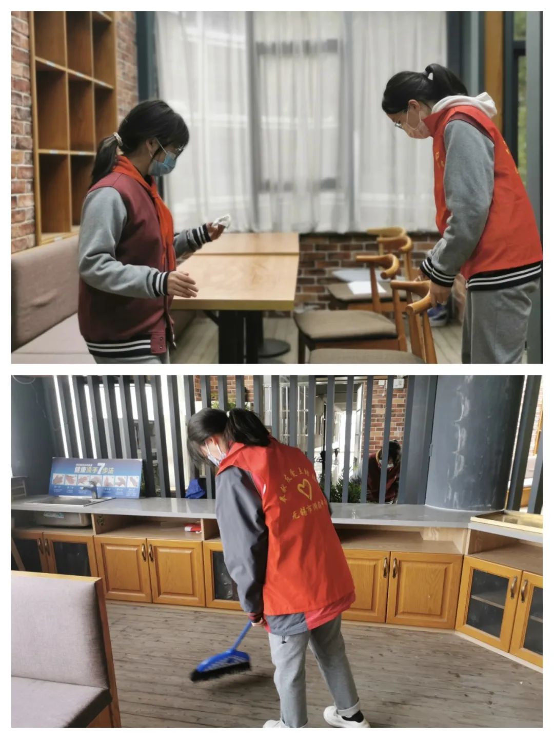 校园内的志愿服务也如火如荼地进行着。楼梯间、报告厅、书吧、仓库,到处能够看到“红马甲”们努力清扫的身影,志愿者们尽自己最大努力,一擦一扫一拖用心去做,得到了指导老师和后勤阿姨的肯定。当他们看着自己所负责的区域焕然一新,窗明几净,脸上不禁洋溢出自豪的笑容,在感叹劳动使人快乐的同时,对雷锋精神的理解更深入了。