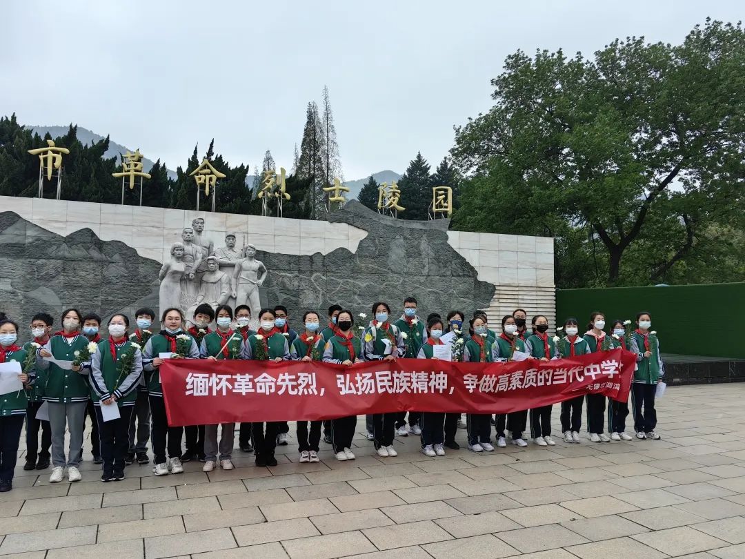 又是一年草绿时,梨花风起正清明。为了缅怀革命先烈,弘扬民族精神,湖滨中学初一(2)钱学森中队的队员们来到了烈士陵园,为那些为国捐躯的烈士们献上鲜花,为那些因正义而牺性的烈士们拂去尘土。