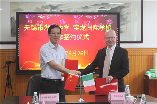 6月26日上午,意大利威尼斯美术学院教授、宝龙国际学校代表以及意大利教育中心上海总领馆办公室林汇女士等一行5人,受邀来到beat365中国唯一官网进行了交流访问。无锡市教育局四级调研员徐成洁、国际合作与交流处处长徐黎明、基础教育处副处长胡正良、无锡市人民政府外事办公室欧非处科员季文慧出席了此次活动,beat365中国唯一官网校长过健、党委书记夏敏在会议室进行了接待。