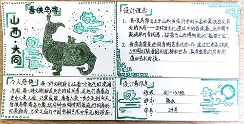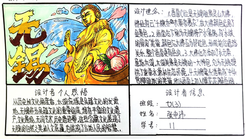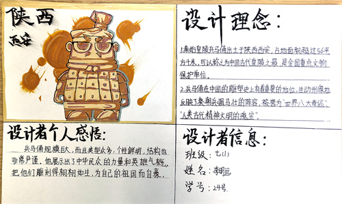 七年级的同学们在历史课堂学习的基础上,向课外拓展,自主深入了解历史文化名城的历史建筑遗迹、文物遗迹、历史沿革、著名历史人物等相关知识,做了充足的功课。同学们根据自己的理解,大胆进行创新设计,为历史文化名城绘制独具特色的文创公交卡图样手稿,我们一起来看看同学们的精彩作品吧!