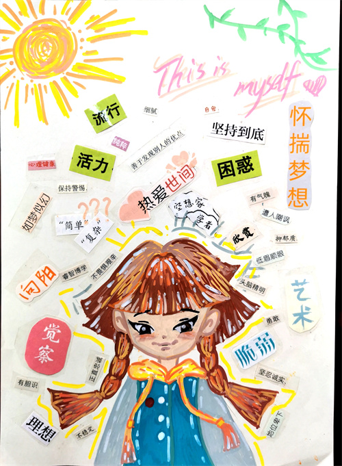 “认识自我”是中学生成长阶段的必修课之一,全面客观的自我认识对中学生的健康成长发挥着至关重要的作用。一个人唯有认清自己、接纳自己,发展出健康的自我概念,他才有能力去认识别人、肯定别人,与他人建立良好的人际关系。拼贴画心理疗法是日本心理学家森谷宽之先生在1987年尝试扩展箱庭疗法的适用范围时无意中创造出来的一种心理治疗的方法,它可以将隐藏在心中的意象可视化,将不好的情绪发泄出来,将美好的感情寄托在其中。