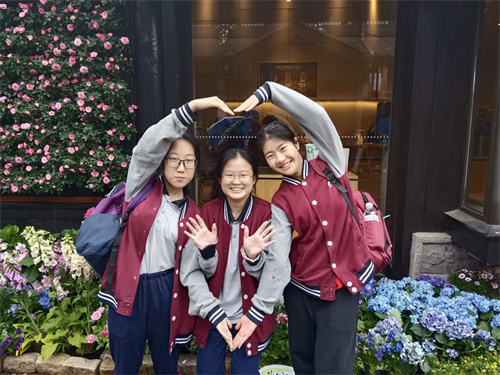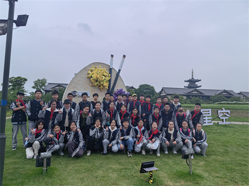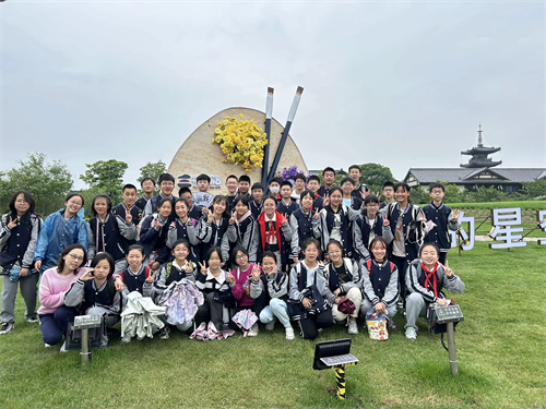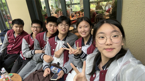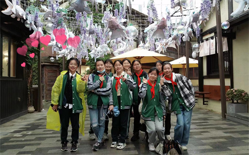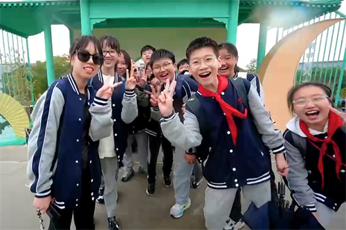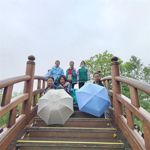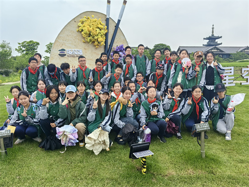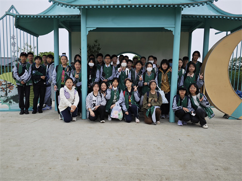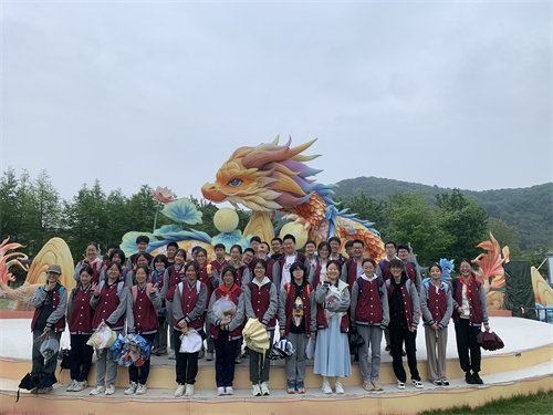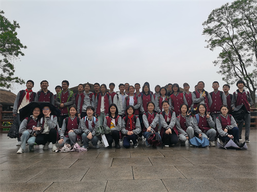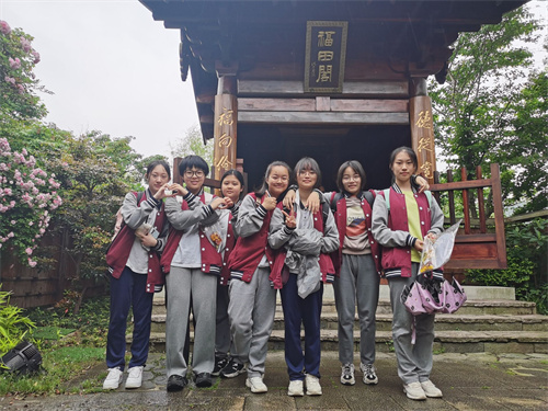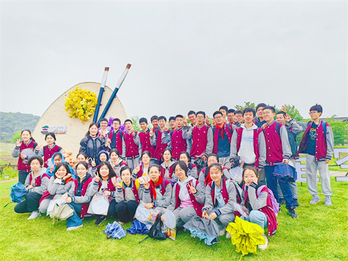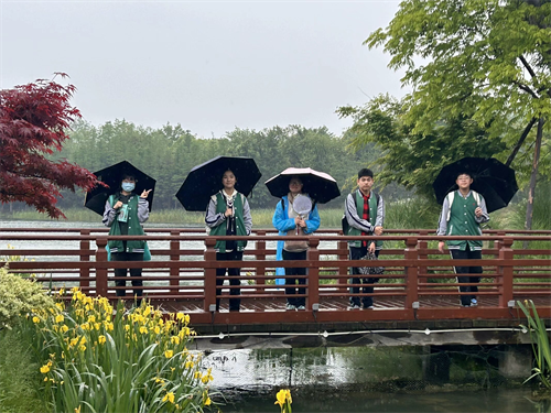 一路上,窗外是芳菲倾城,窗内是憧憬无限。我们或欣赏沿途风景,或大声歌唱抒情。走下大巴,扑面而来的是人间晚春,趁春光与笑靥齐齐如花,“咔嚓”“咔嚓”的合影声四起。伴随着一声“解散!”一个个班级瞬间蹿成了无数个小分队,随着雨丝游走在旷阔的山野与潋滟的春色之间。