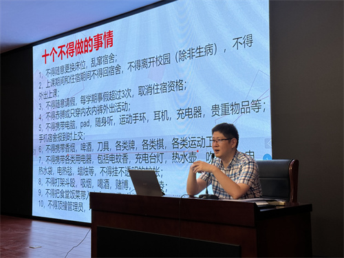 大会由德育处副主任乔臻主持,首先他对同学们加入住宿大家庭表示欢迎。他强调宿舍作为学生学习生活重要场所,要严格遵守住宿纪律要求,加强自我管理;同时他鼓励同学们共同营造一个温馨、和谐、有序的住宿环境。