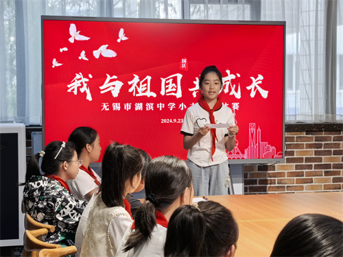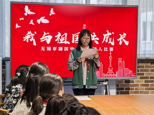 初一4班华淑妍:我和班里同学一起参加了这次主持人比赛,听着同学们个个动听的读书声,我的心里也泛起了层层波澜。第二段的即兴演讲更是竞争激烈,大家各显神通,对"我与祖国共成长"各有高见。这次比赛让我见识到了大家的文采,也让我对‘精业怡美'这条校训理解更深了。希望未来在湖滨这个温馨的大家庭,能够发掘潜能,完善自我!