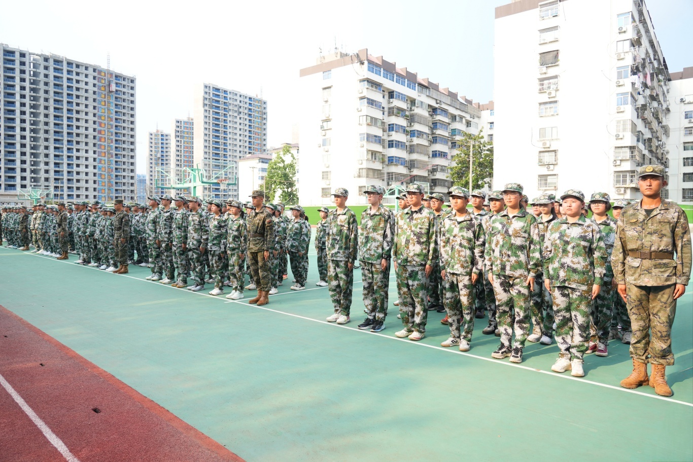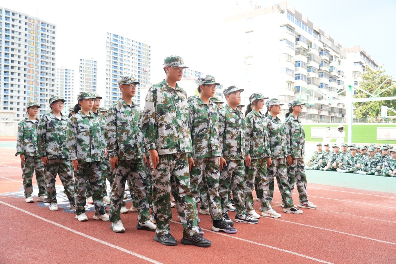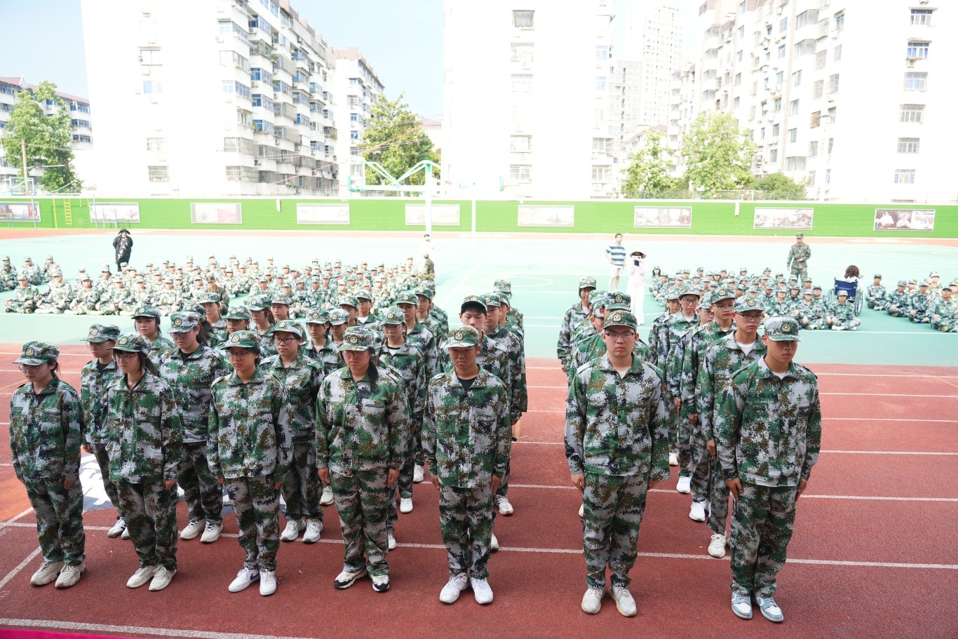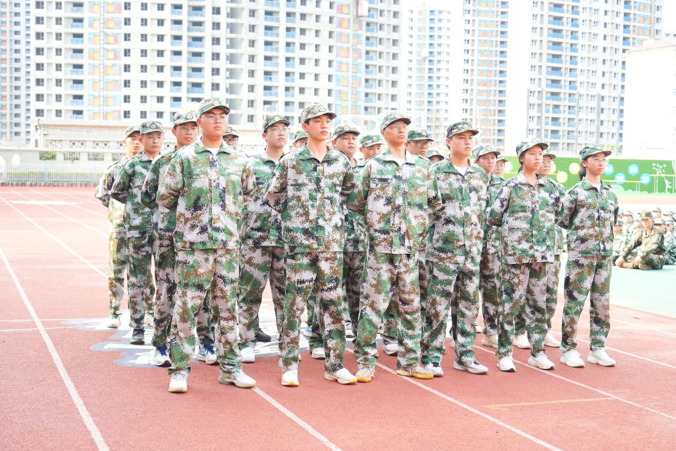 全体高一新生身着整齐迷彩服