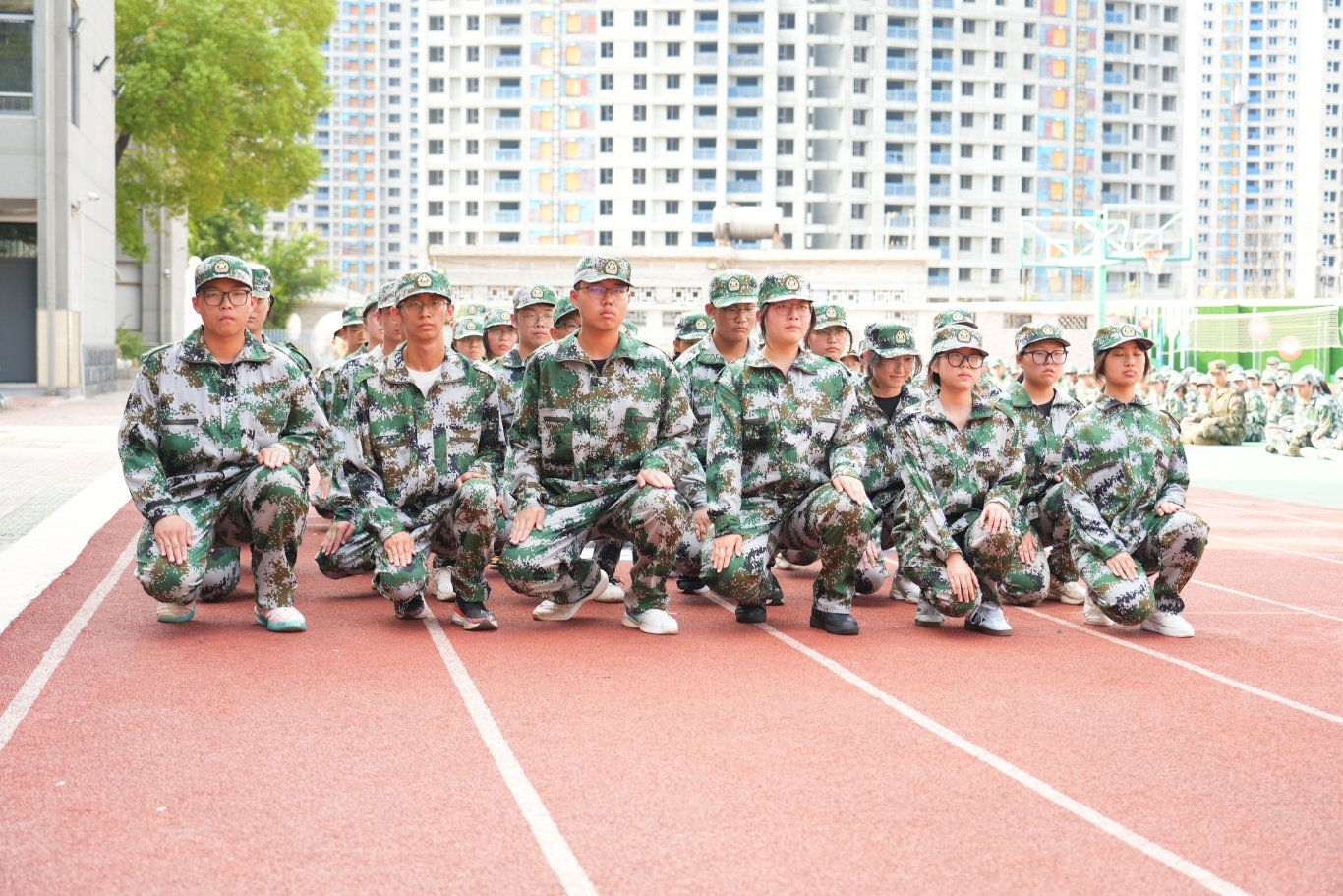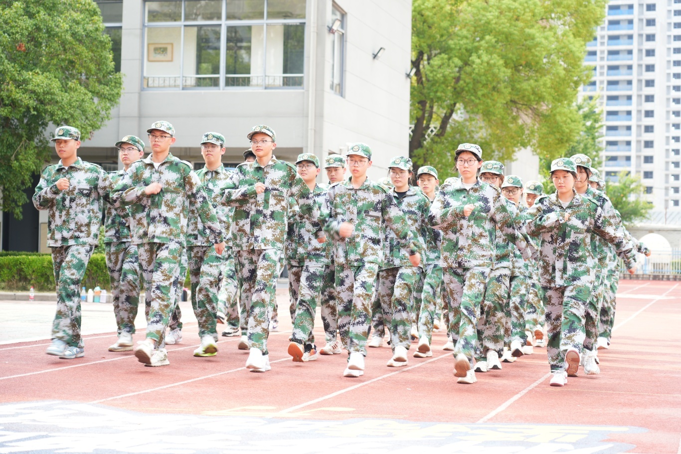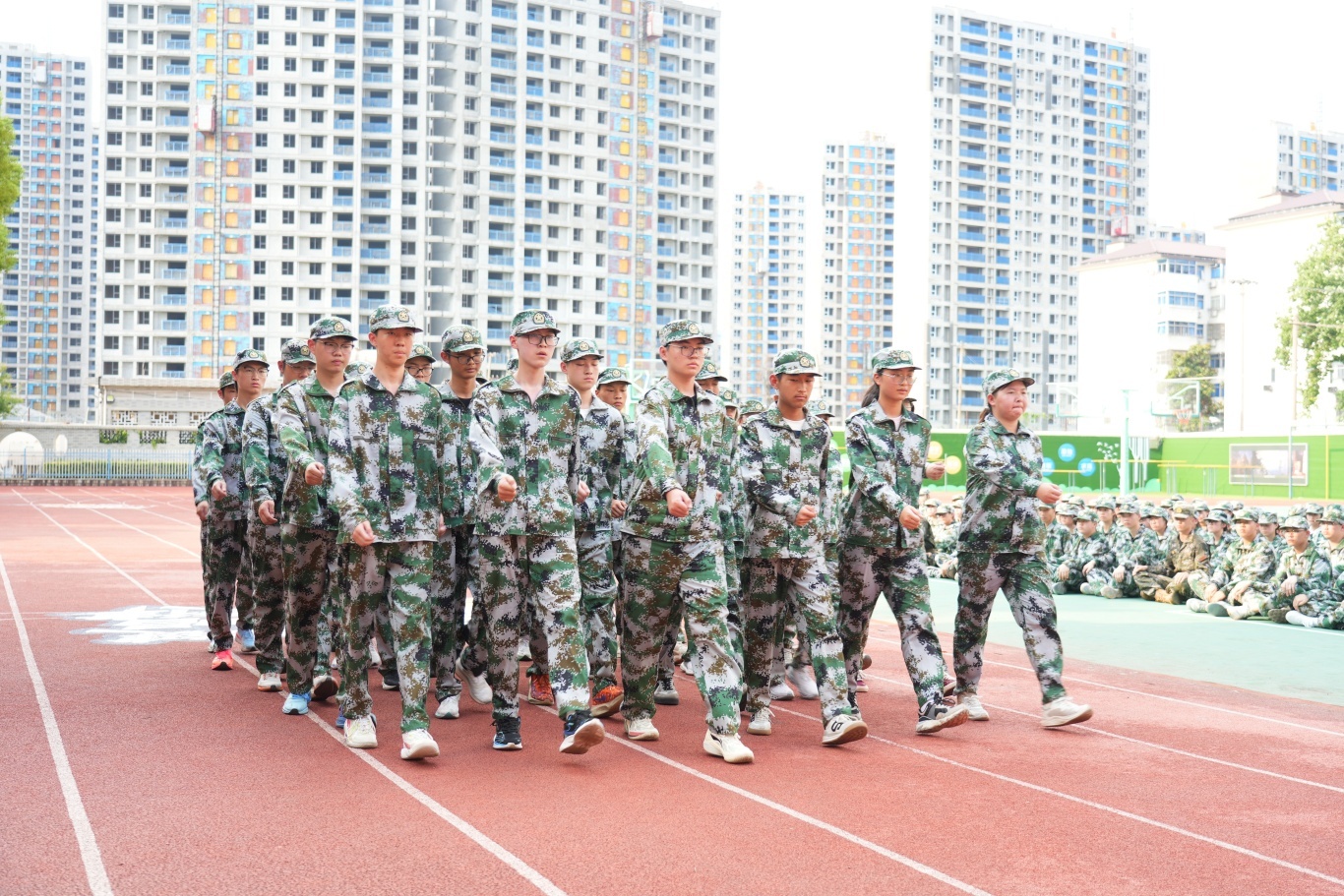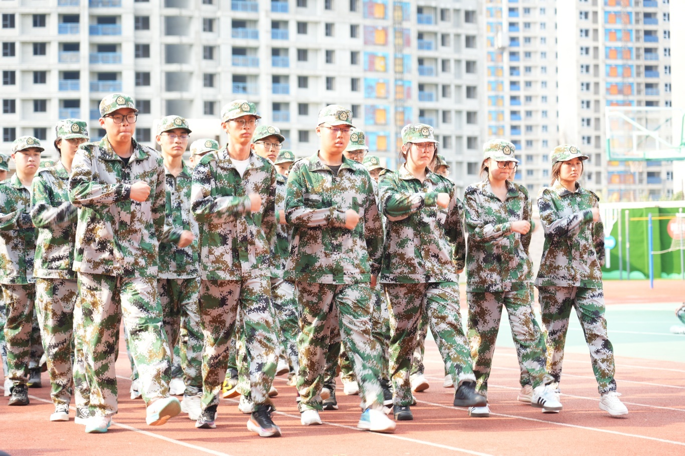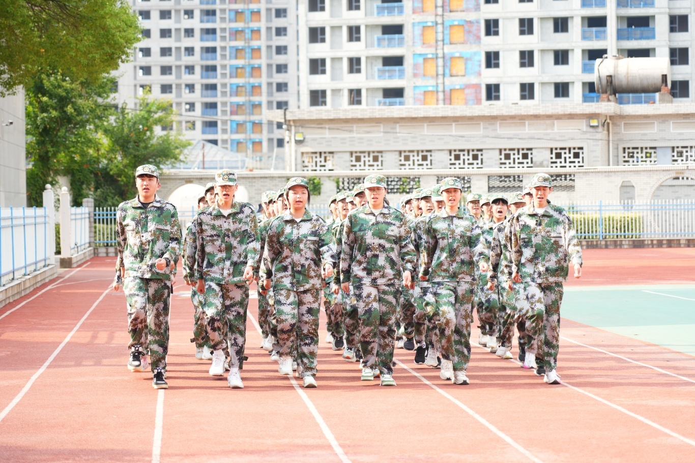 全体高一新生身着整齐迷彩服