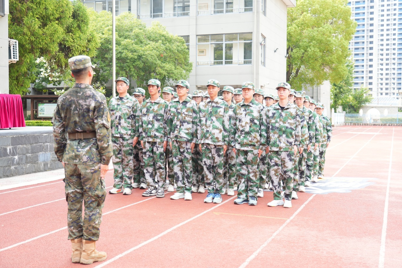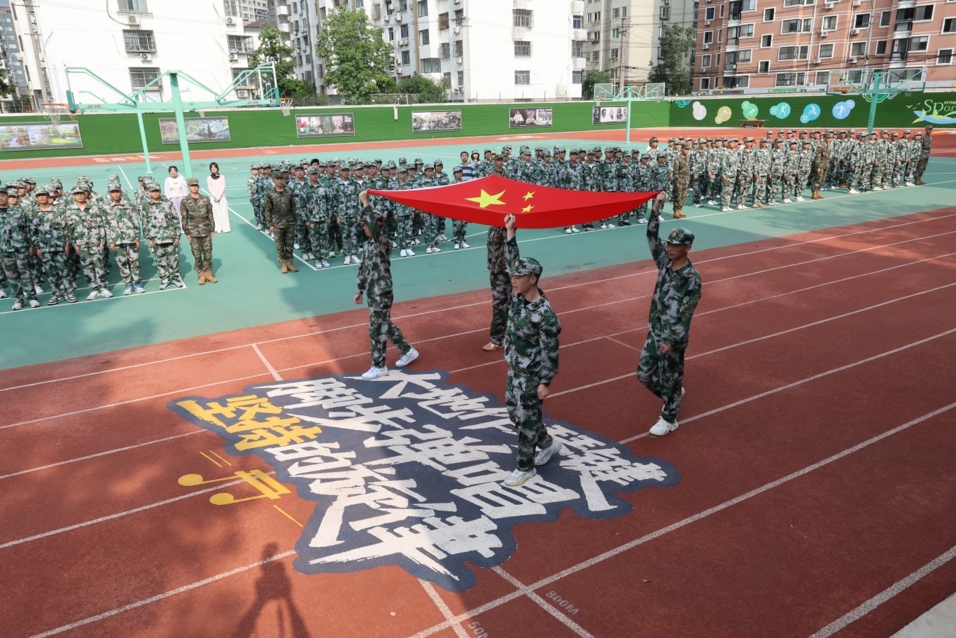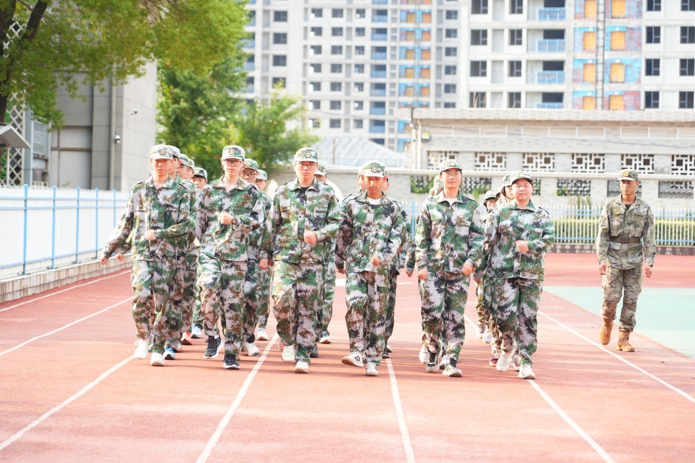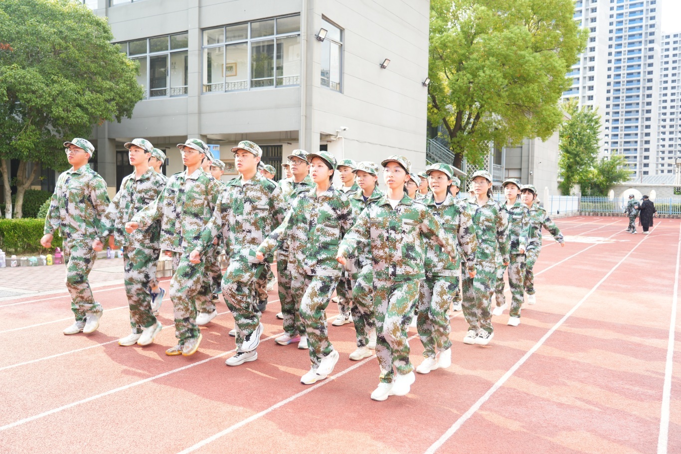 全体高一新生身着整齐迷彩服