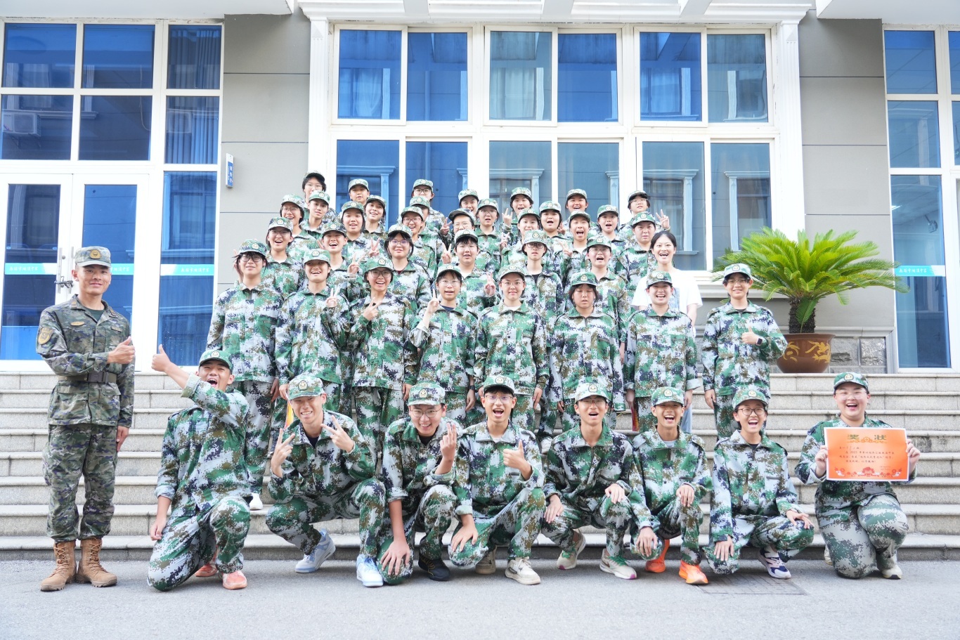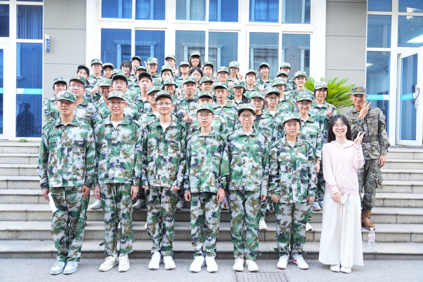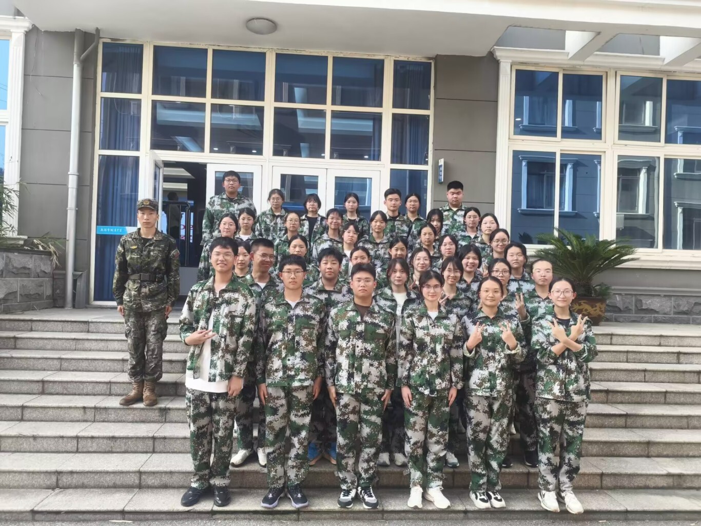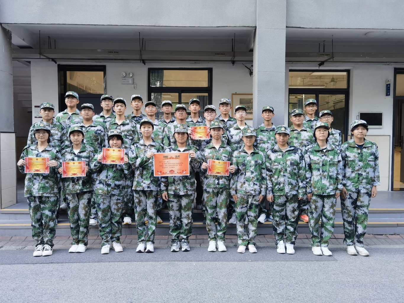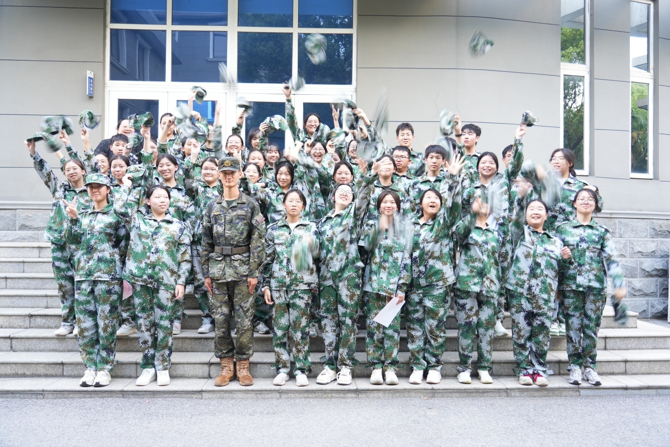 全体高一新生身着整齐迷彩服