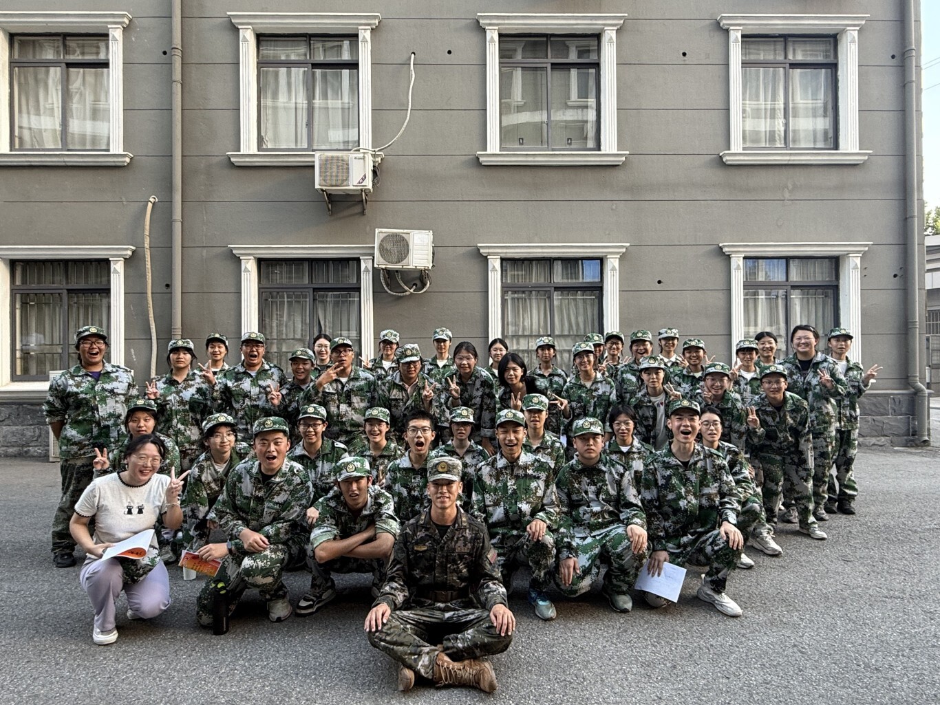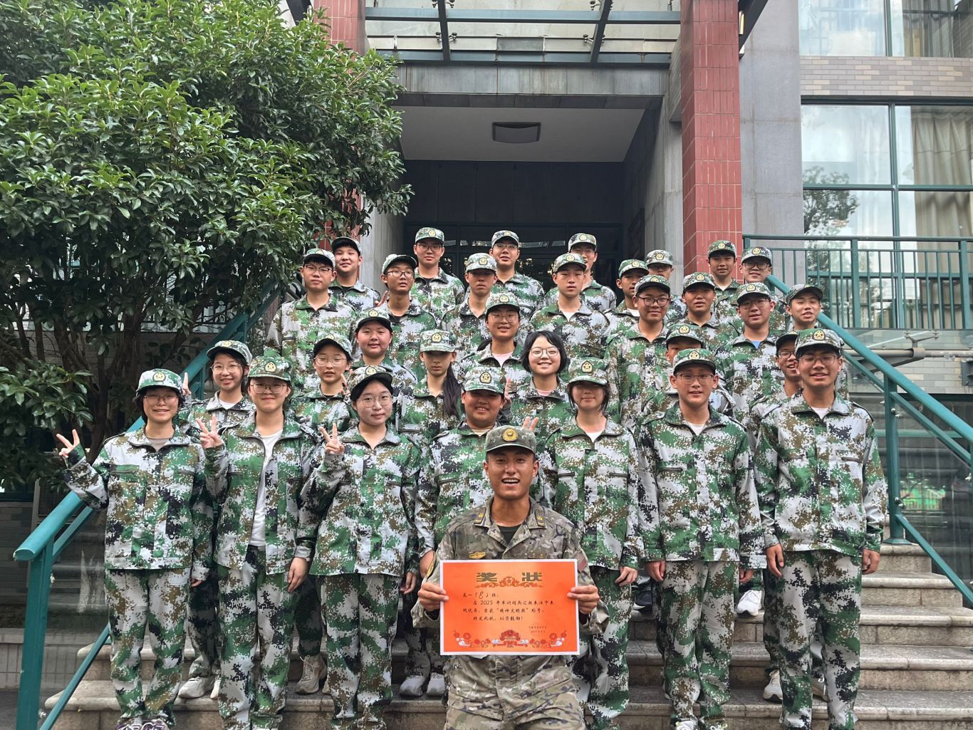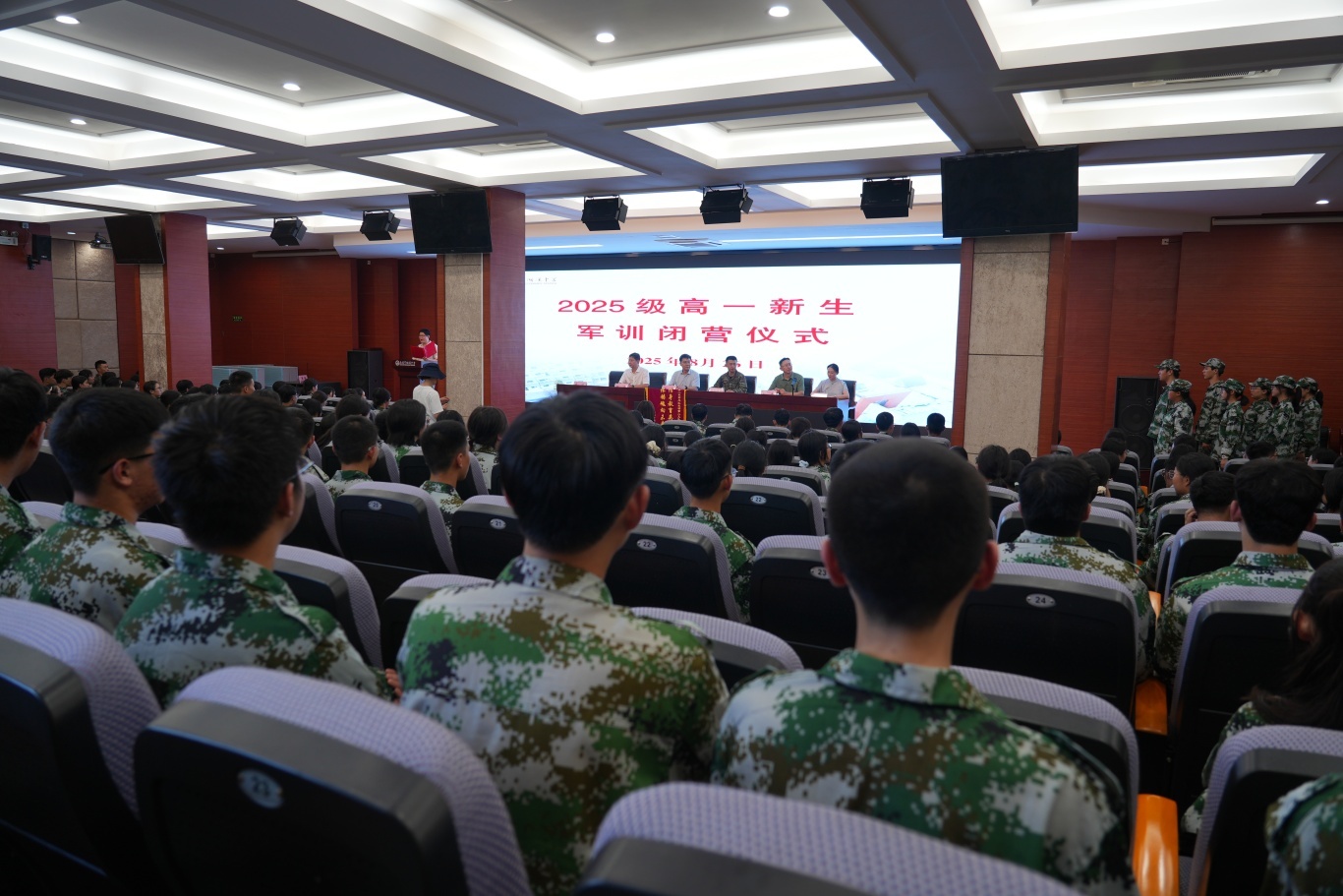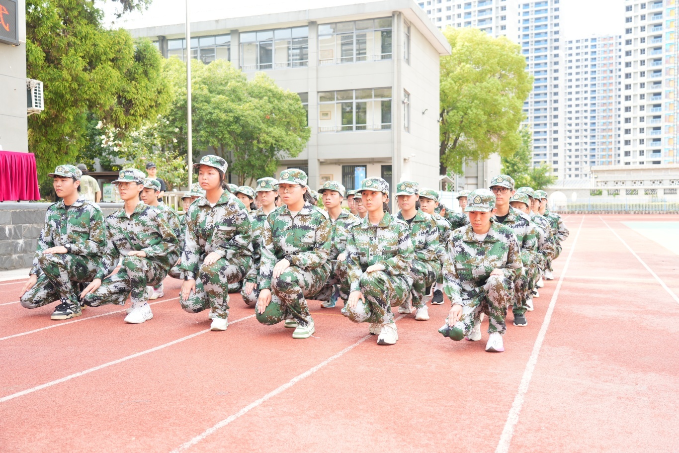 全体高一新生身着整齐迷彩服