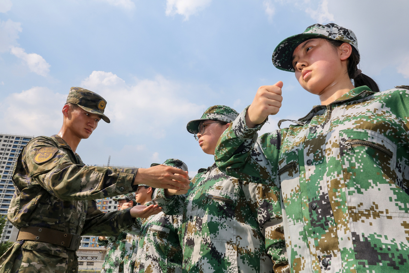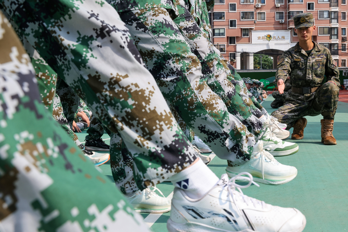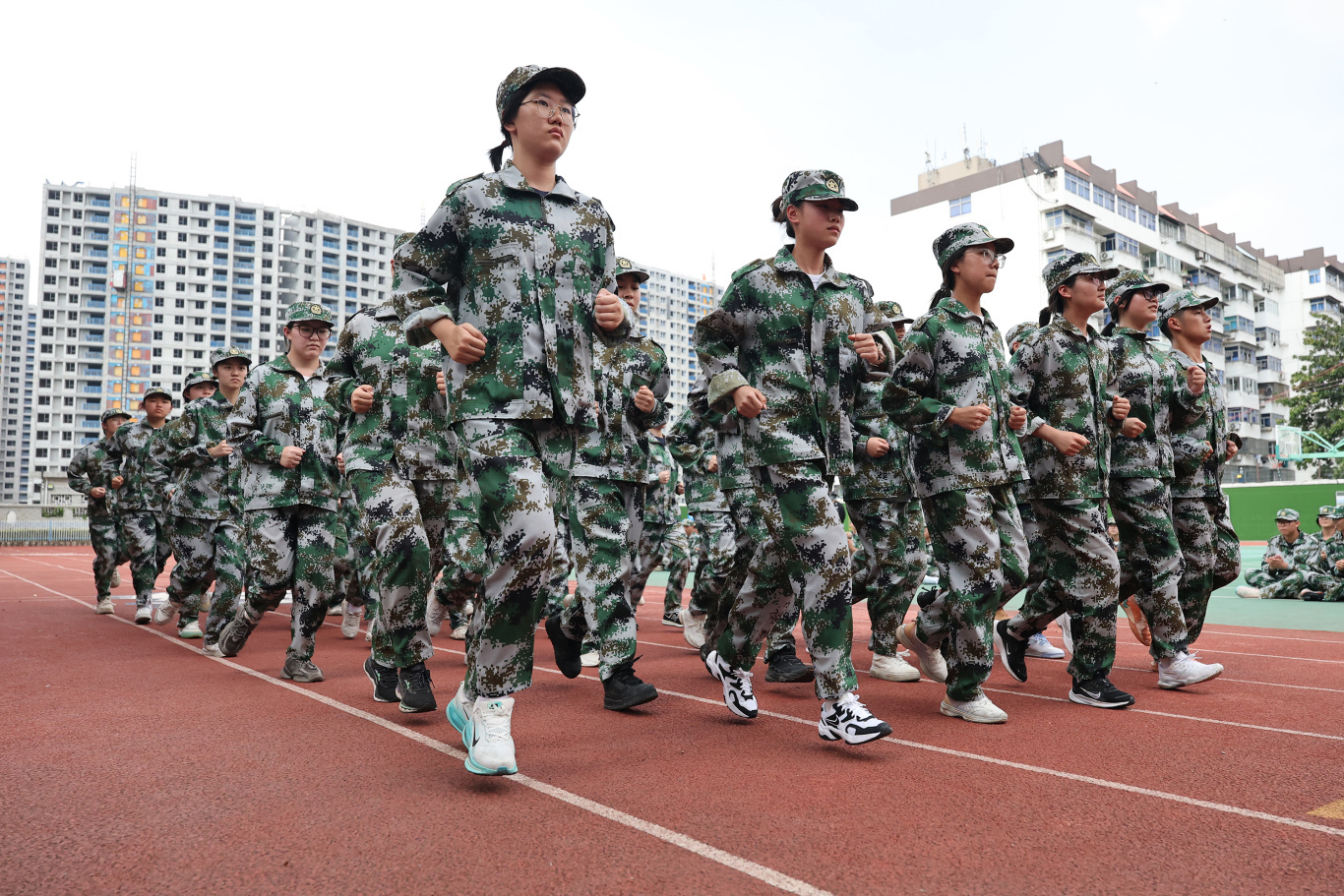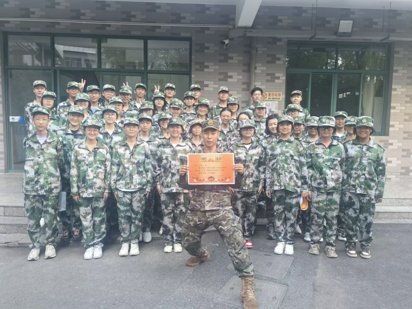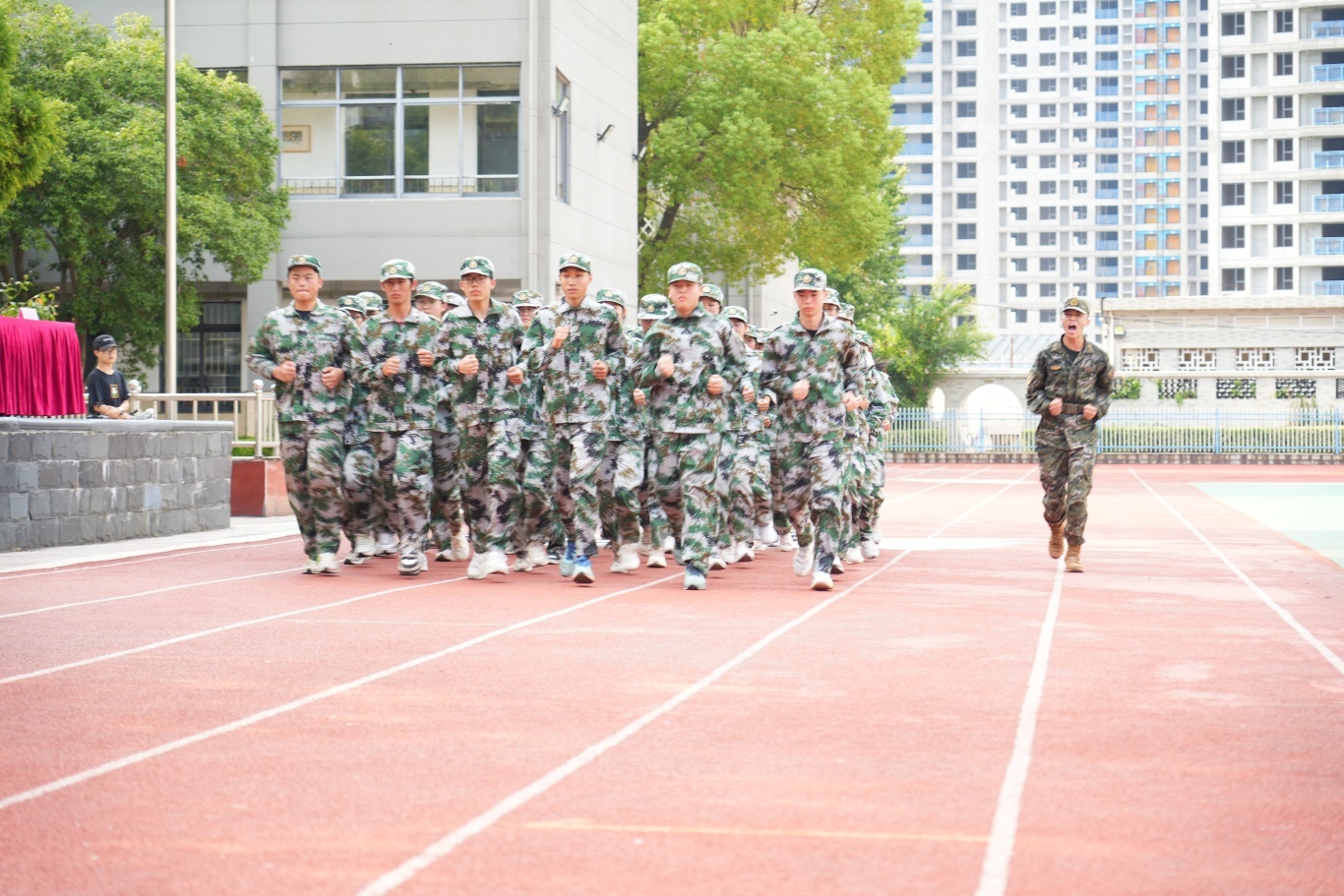 全体高一新生身着整齐迷彩服