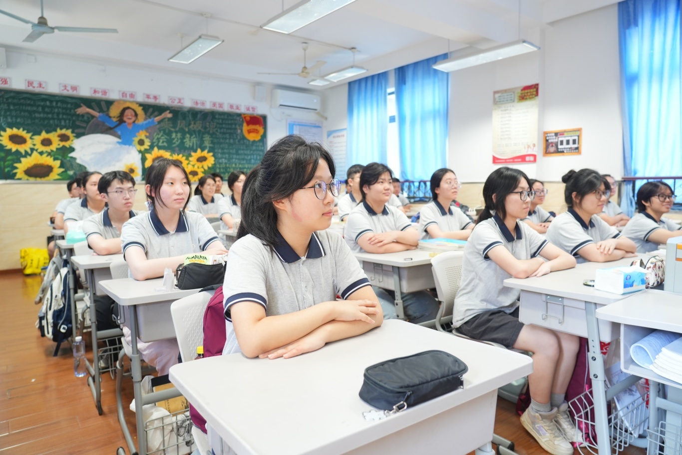同学们专注凝视屏幕