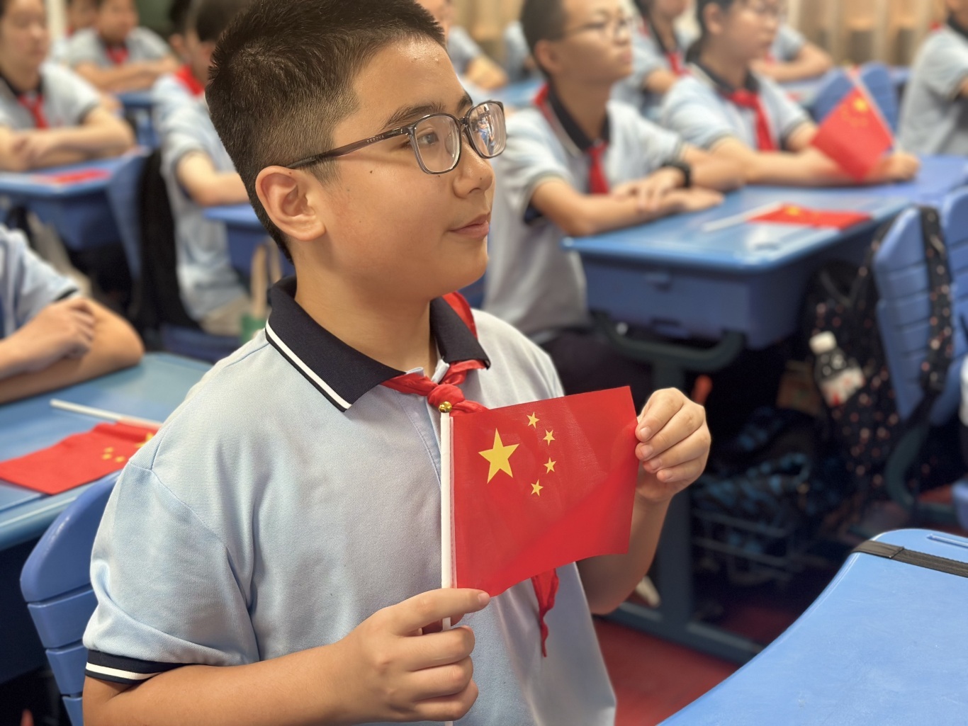 眼中满是对祖国的崇敬,对英雄的敬意