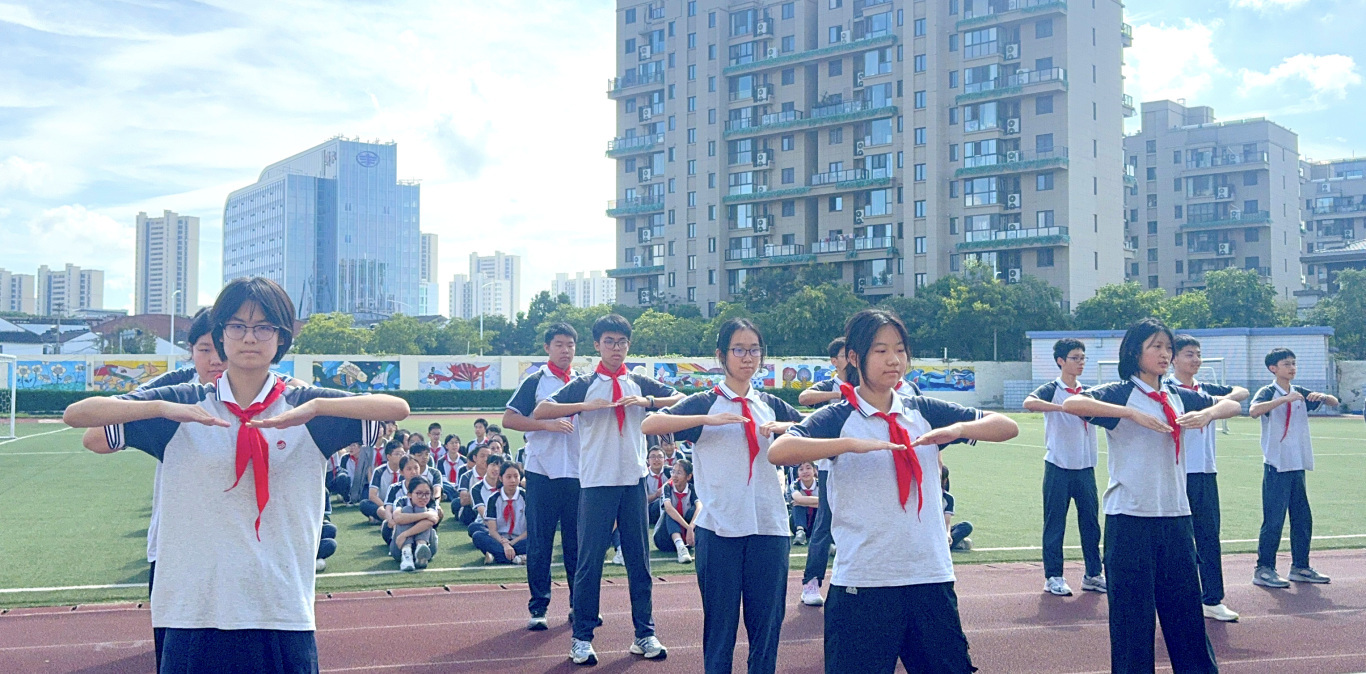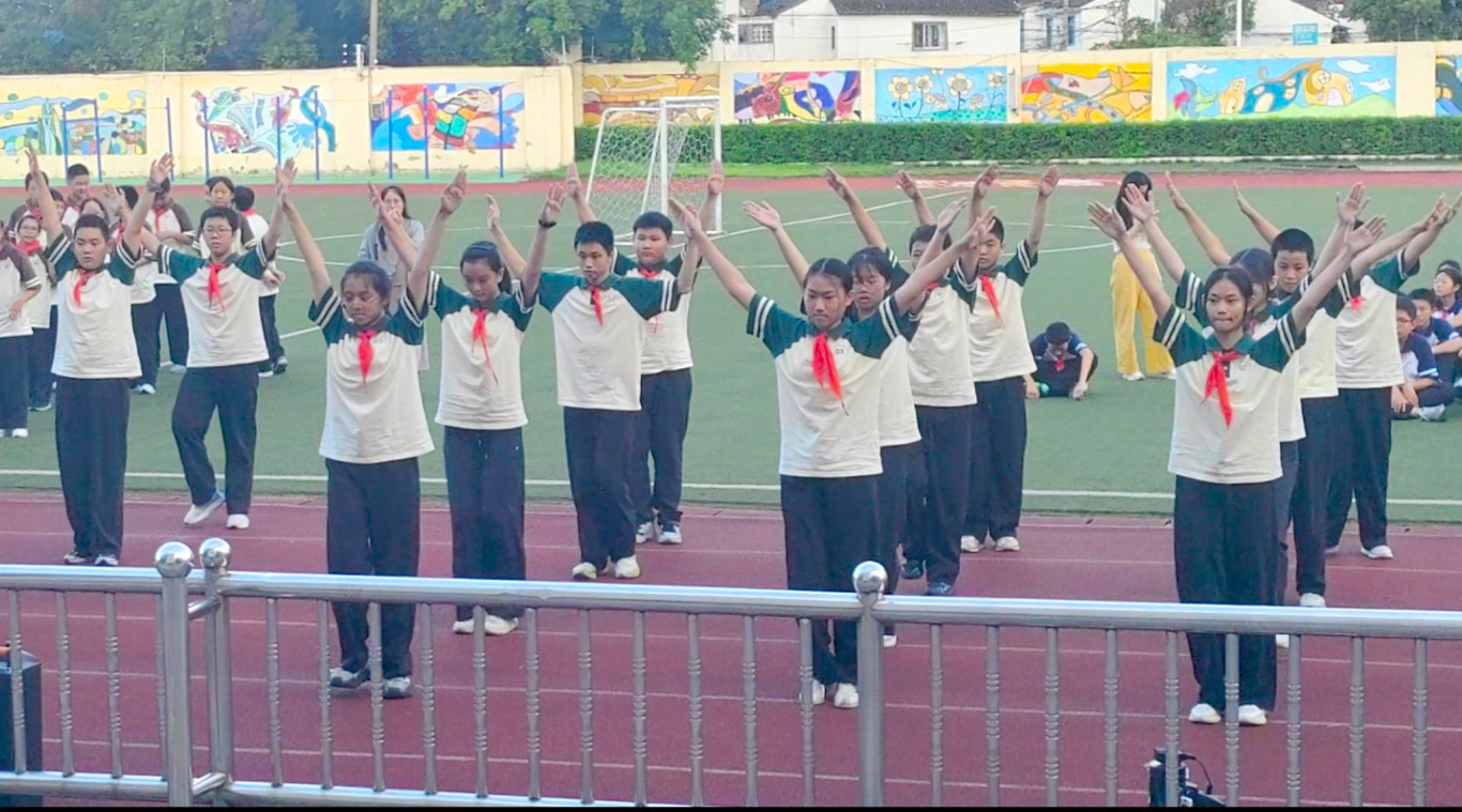 回顾备赛历程,感动历历在目。从开学第一天起,同学们就在烈日高温下,开始了广播操的学习。对于刚从小学升入初中的初一新生而言,这是融入新集体的第一课。一个个动作的分解练习,一次次节奏的反复磨合,汗水模糊了视线,但眼神却愈发坚定。