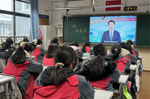 今天下午的班会课上,同学们分享了寒假的趣闻趣事,并观看了由无锡市教育电视台制作的开学第一课:《追光逐梦,科创未来》。学生们感叹于无锡科技的飞速发展,大家纷纷表示要将青春之志与时代同频,与祖国共同奋进。