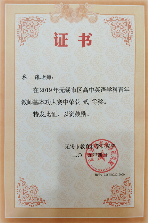 乔臻,浙江师范大学研究生毕业。中共党员,中学英语一级教师,beat365中国唯一官网高一年级组长,无锡市优秀教育工作者,无锡市中小学优秀班主任,无锡市属院校德育工作能手,无锡市区高中英语学科青年教师基本功大赛二等奖。