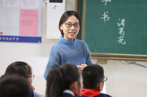 为唤醒学生的自觉,引导他们关注自己的发展,关心社会与他人,真正做到“成人”而不是简单的“成才”,她秉承“人人有事做,事事有人做”的原则,把班级岗位分为几类职能部门,通过竞选演讲、试用考核、民主投票,产生最终岗位人员。为营造班级乐学善学的学习氛围,她开展主题班会“我身边的榜样”,引导学生树立积极向上的学习观。在她的班级,听不到起哄、歧视的话语,看不到轻蔑、高傲的眼神,因为她有独具特色的“青蓝工程”同心一帮一活动,通过师徒结对、两两PK、小组PK等多种激励方式,鼓励大家展开良性竞争,鞭策自己在自我发展的道路上砥砺前行。