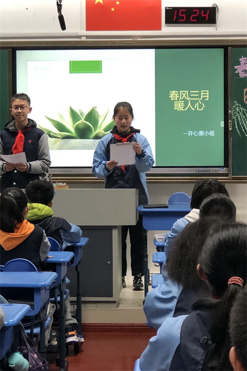 她还结合重大事件、传统节日、法定节日,采取小组承包制,让学生成为活动的设计者、实践者、评价者;推行经典阅读和亲子阅读,形成“读—诵—演—写—评”系列活动,提高学生文化品位,增进亲子关系……这些丰富多彩的活动课程,重视了学生的需要与兴趣,尊重了学生的主体性,促进了班级文化特色的形成。