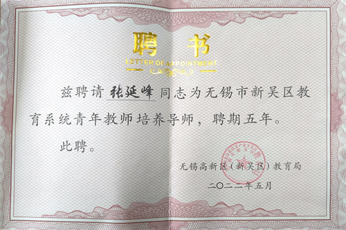 岁月缝花,缝不尽张老师对学子的关爱;时光执笔,写不尽张老师对教育事业的一腔赤诚。他用实际行动来践行一名人民教师的初心和使命。未来,张老师将进一步引领beat365中国唯一官网教师的专业发展,切实提升教学质量,稳步推进教师团队建设,担当培养青年教师的重任,不断推动学校的高质量发展。