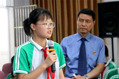 在互动环节,同学们踊跃发言,分享了自己对校园欺凌的认识及应对方法。奚检察官对同学们的积极参与给予了高度评价,并鼓励大家将所学知识应用于实际,勇于向校园欺凌说“不”。通过这次宣讲,同学们不仅增强了自我保护意识,也对欺凌者的法律责任有了更清晰的认识。