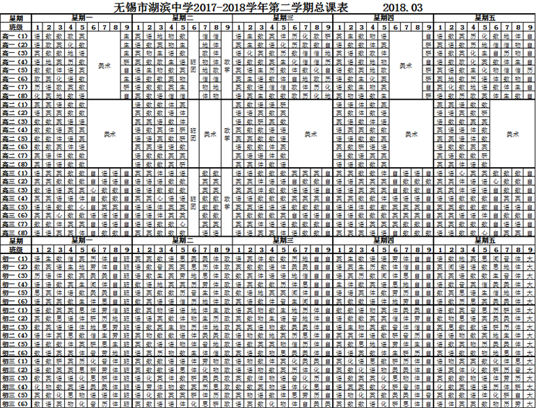 2017-2018学年第二学期总课表(3月19日起)