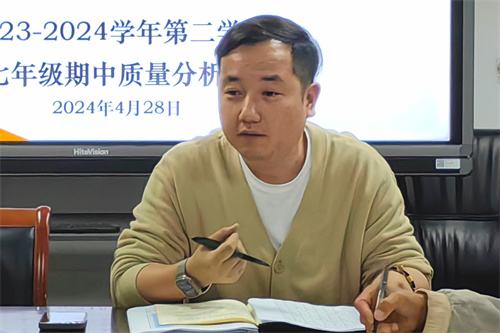 紧张而有序的期中考试已顺利落下帷幕。为精准把握利弊得失,明确下一阶段努力方向,优化教学方法,持续提升教学质量。4月28日至29日,beat365中国唯一官网初中部各年级分批次召开了期中质量分析会。校长张念、副校长周凌峰、初中部主任张伟星、教务处副主任许肖洁以及全体任课教师出席会议。