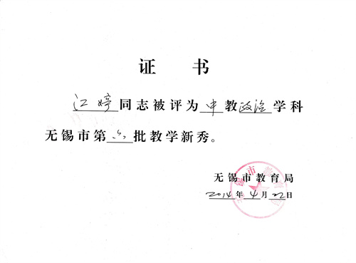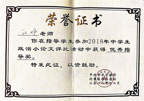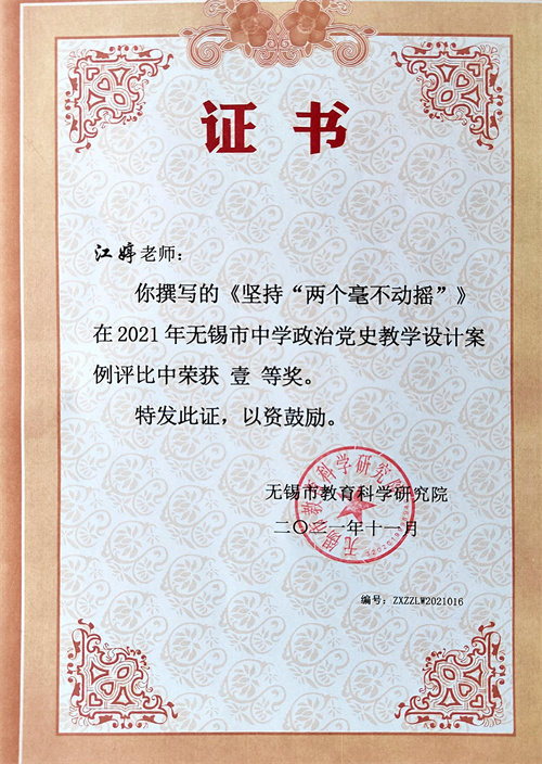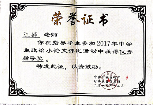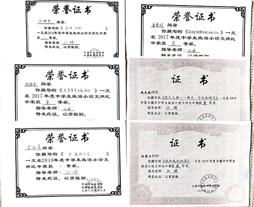 做一名好老师,不仅要学会教书,更要学会育人。多年来,江老师坚持启智润心教育,注重培养学生的学习能力和核心素养,指导学生多次参加无锡市中学生政治小论文比赛,获一、二等奖。