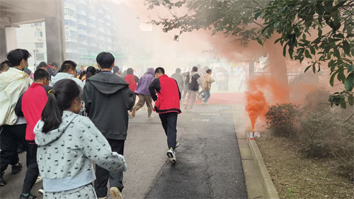 11月18日上午9点整,警报声响彻校园,同学们捂住口鼻,弯腰靠墙,按照指定路线有序撤离到操场安全地带。整个演练过程快、静、齐,大家紧密合作,服从指挥,迅速完成了此次演练任务。